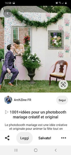 Ciao ragazze, adoro l'idea del photobooth al matrimonio perchè è molto divertente e in questo modo si riesce ad avere davvero le foto di tutti gli invitati perchè nessuno sa resistere... vorrei però fare qualcosa di diverso dal solito, a tutti i...