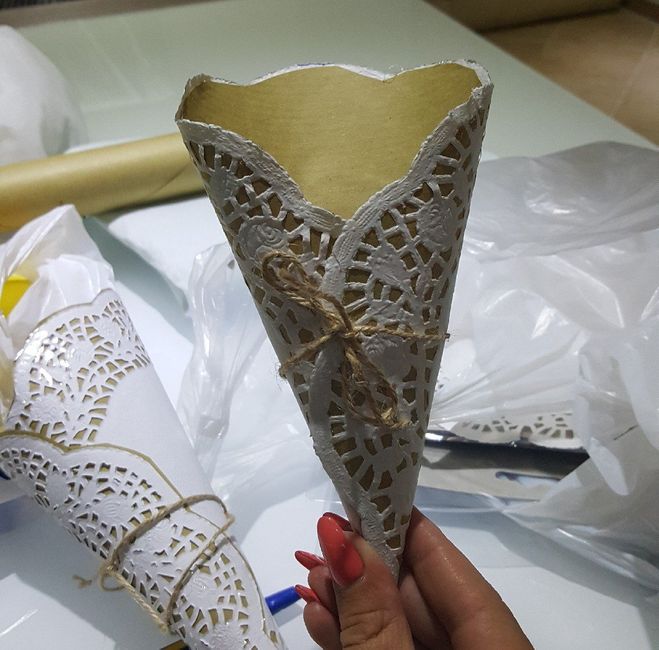 Vi ricordate i miei coni portariso?ho cambiato idea...li farò bianchi con un velo interno pesca essendo i due colori scelti per la cerimonia...meglio così?quelli con la carta scuri sembravano x il pesce 😂😂