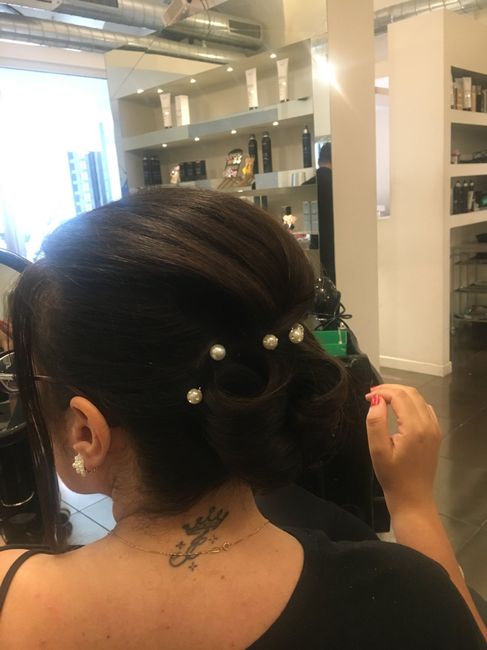 Oggi prova acconciatura, considerando che: è imprecisa e poco definita perché l’ho fatta in pausa pranzo da lavoro e non hanno potuto “sporcarmi” i capelli con lacca, cera e altro - che mancavano le perle da mettere fra i capelli - che li ho corti...