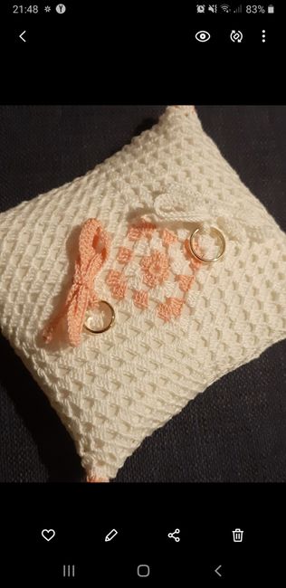 Cuscinetto portafedi che ho realizzato per il mio matrimonio. Ci sono delle imperfezioni però sono contenta 🙈😁I colori saranno il salvia e i colori pastello e per questo ho scelto il filato bianco e il pesca.