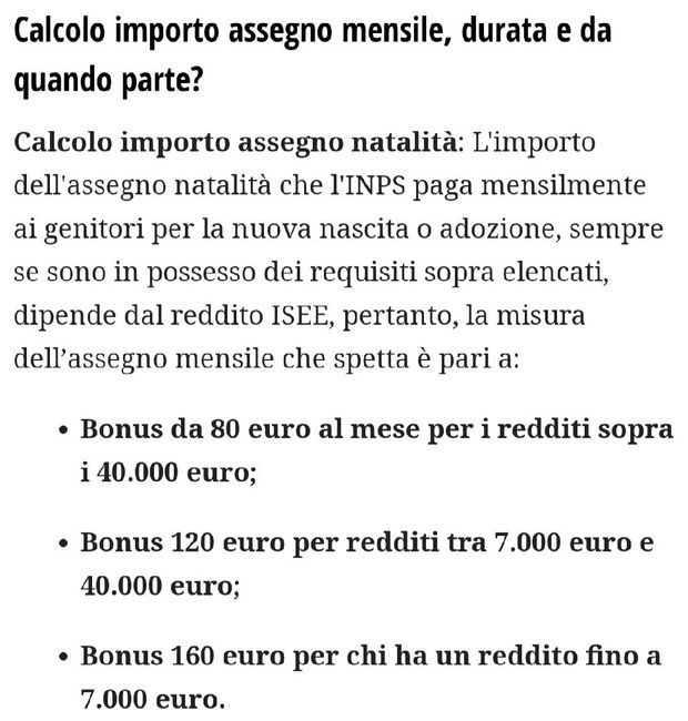 Ciao mamme, non so se avete sentito che per il 2020 il bonus bebè subirà delle variazioni per le famiglie con reddito medio, ovvero diventerà di 3 fasce come nella foto che ho allegato qui. Ora da reddito medio il mio dubbio è: prenderanno 120€ e non...