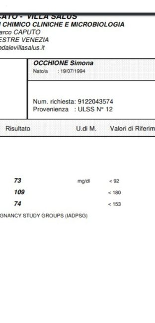 Finalmente ho ritirato i risultati della curva, non li comunico subito alla ginecologa perché tra pochi giorni andrò a controllo. Ho il timore che non siano confortanti: 0 = 85, dopo 60'=169, dopo 120'=146. Sono alti?