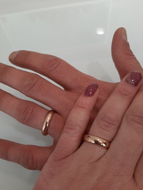 Buongiorno ragazze ecco a voi le nostre fedi...finalmente oggi le abbiamo provate dopo ke il nostro orafo di fiducia ce le ha fatte!la nostra bellissima classica fascia larga oro rosa nn vedo l ora di portarla al dito!sono felicissima😀😀