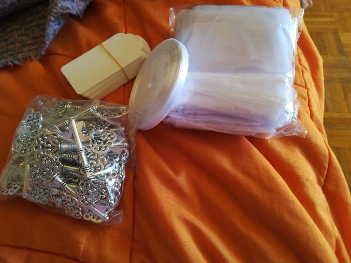 Buongiorno a tutte sposine, ho comprato queste chiavi per fare dei sacchettini da poter lasciare ai colleghi, come pensierino per il matrimonio, é arrivato tutto ciò che serve per confezionarle, secondo voi che frase posso scrivere sul cartoncino?...