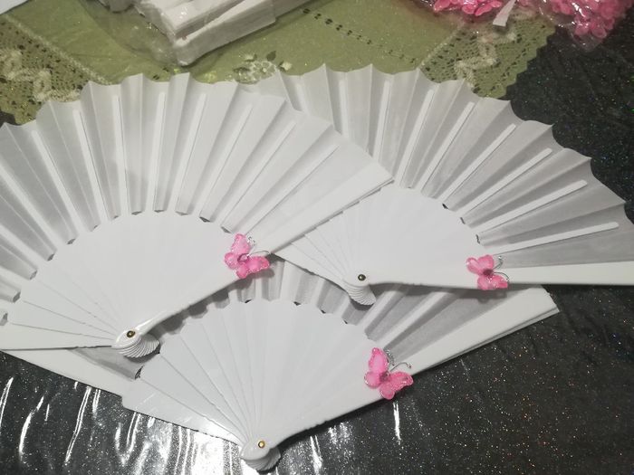 Ed in questi giorni di reclusione, dopo il lavoro, mi dedico ai fai da te, decoriamo i ventagli Vorrei comprare un uniposca rosa e scrivere le iniziali e la data, dite che resta? Grazie a chi mi aiuterà ❤️