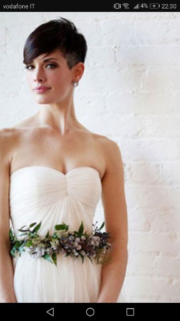 Buonasera a tutte, vedo sempre acconciature con capelli lunghissimi e raccolti nei più disparati. Possibile che nessuna si sposi con i capelli corti??? Qualcuna (con capelli ovviamente corti) ha delle foto da mandarmi?? anche da chi si è già...