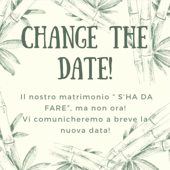 Anche noi abbiamo dovuto spostare il matrimonio, previsto a maggio. Abbiamo avvisato parenti e amici con questo “ChangeTheDate”, realizzato in pochi minuti su Canva. Tutti gli ospiti ci hanno detto delle belle parole e ovviamente erano tutti...