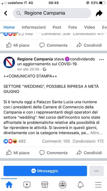 Buongiorno ragazze, per tutte le spose campane, è di stamattina un articolo che, cito: "In Campania il wedding riparte il 15 giugno: ok ai matrimoni con gli invitati Vertice in Regione Campania tra il governatore Vincenzo De Luca e il presidente di...