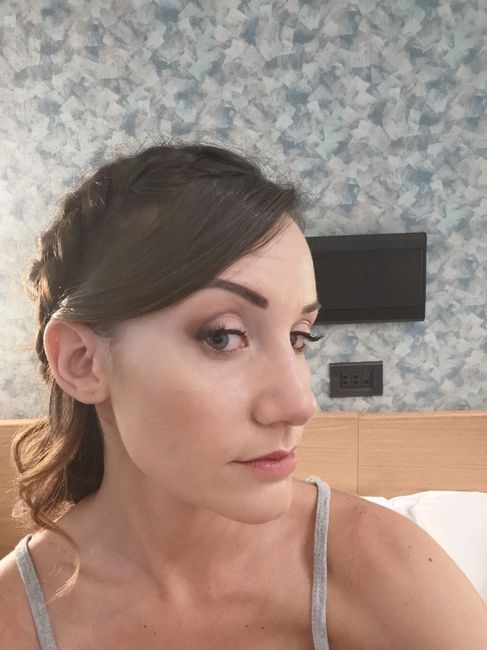 Oggi finalmente anche per me prima prova trucco e acconciatura.. Sono molto soddisfatta, penso che semplicemente allungheremo maggiormente lo sguardo quel giorno ma mi piace molto l'effetto finale.. Che ne dite?