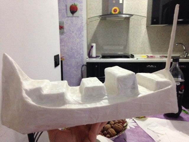 Ciao ragazze, come vi sembra la base per il mio tableau?? l'idea è quella di realizzare la barca per il sushi... l'ho creata con un cartoncino, e scatolette della farmacia.... accetto consigli!! ah dimenticavo...poi la colorerò di marroncino chiaro...