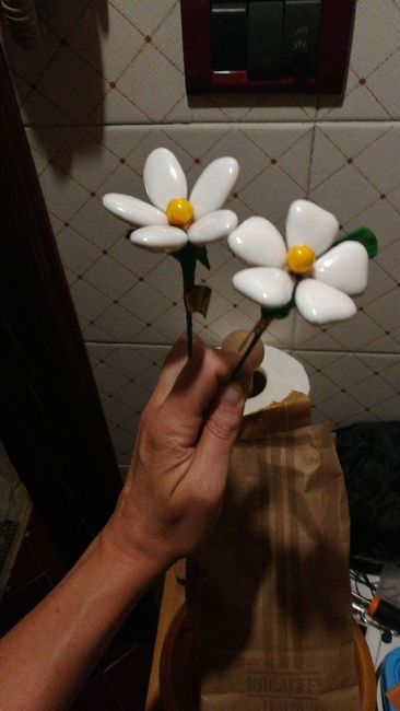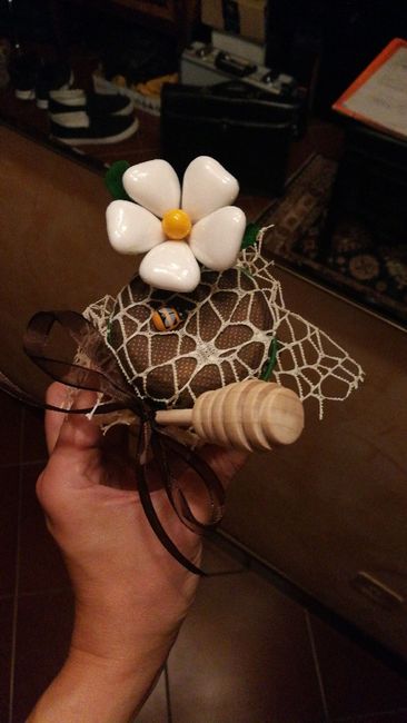 Arrivati i fiori di confetti! Subito assemblati con le bomboniere... Dei vasetti di miele locale con bastoncino di legno... Credo impazziro' perché ci ho messo 10 minuti a farne uno... Me ne mancano solo 104... Ma ho più di 2 mesi... 😅 Vi piacciono? ...