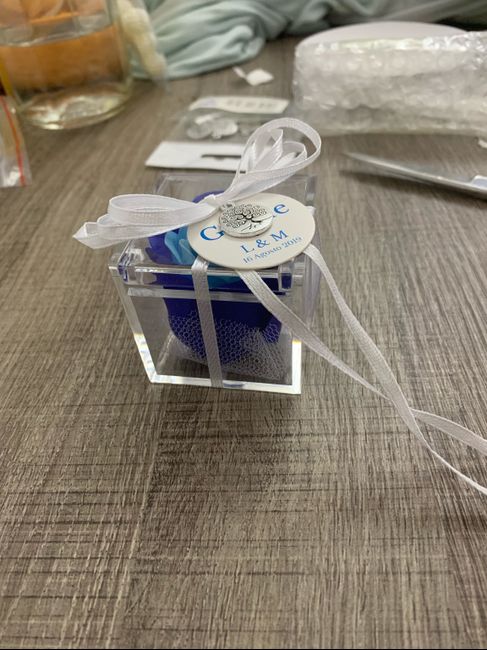 Buongiorno Brides, mi fate vedere come sono confezionate le vostre bomboniere? Fiocco, colore, decorazioni! Il negozio che ha confezionato le nostre, in realtà ha fatto una confezione che non mi convince e mi rende un po’ perplessa 😓 grazie ☺️