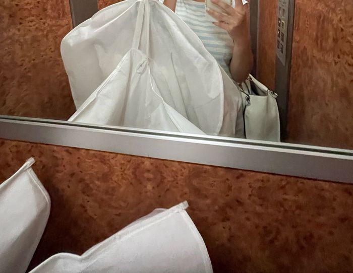 Ebbene sì: oggi ho avuto l’ultima prova dell’abito, che adesso è appeso in camera mia 😍 era perfetto e ho avuto la conferma che riesco a camminare agevolmente e a sedermi… ora rimane solo da collaudarlo 😂