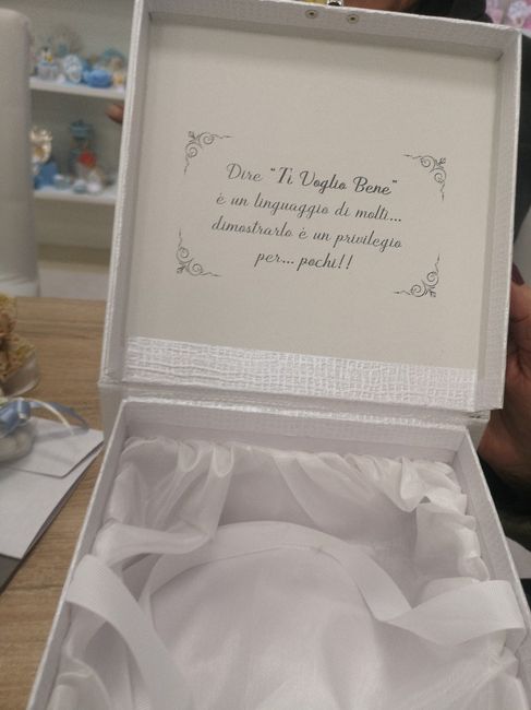Ragazze buonasera finalmente dopo tanta indecisione abbiamo scelto le bomboniere. È ceramica di capodimonte senza il nastro brillantinato però. In questa valigetta confezionata ovviamente decorata col blu 😍😍😍 vi piacciono? E voi che avete scelto? ...