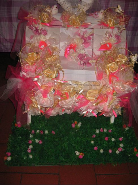 Ciao ragazze finalmente e dico finalmente tutto prontoooooooo!!!!!!!!!! Allora questa è il retro della panchina "SPOSA" Queste sono le quattro bomboniere 2 genitori e 2 testimoni queste è 1 riavvicinata e questo è il tocco finale....tutto insieme già...