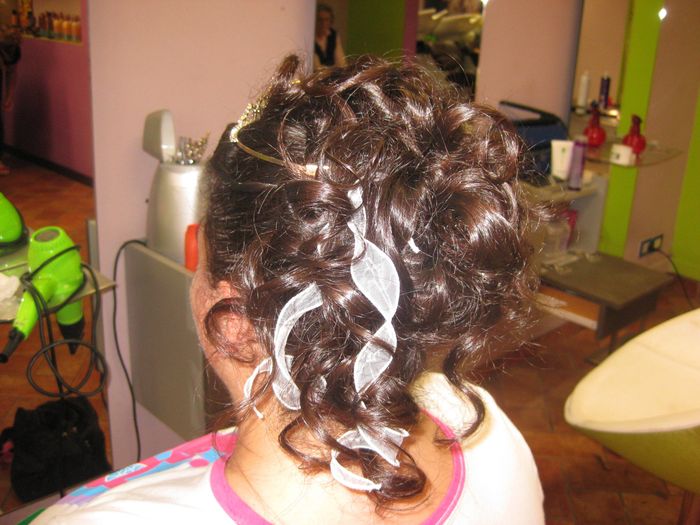 Ciao Ragazze come promesso mi hanno fatto delle foto per la mia prima acconciatura.. ora ci dovrò tornare tra un mesetto per altre due prove e poi ci sarà la definitivaaaaaa!!!!!!!!!!!!!!!!Speriamo bene!!!!!!!