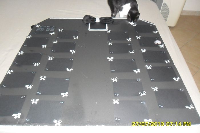 Riprendendo sempre i due colori predominanti ..vi mostro la bozza del mio tablout ..che ovviamente dovrà ancora essere assemblato e arricchito con piccoli dettagli. questi sono i segnatavolo ..mancano solo i nomi dei tavoli ...