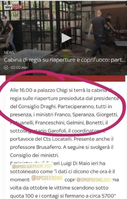 Ragazze, notizie di pochi minuti fa dalla Cabina di Regia. Draghi ha dato l’ok a i matrimoni come lo scorso anno da metà giugno. Si attende ora il Consiglio dei Ministri. Dove speriamo possano rivedere il Greenpass. vi aggiorno appena verranno...