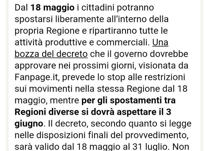 Ragazze questa mattina ho letto questo Dopo il 31 luglio forse si potrà ripristinare la vera normalità