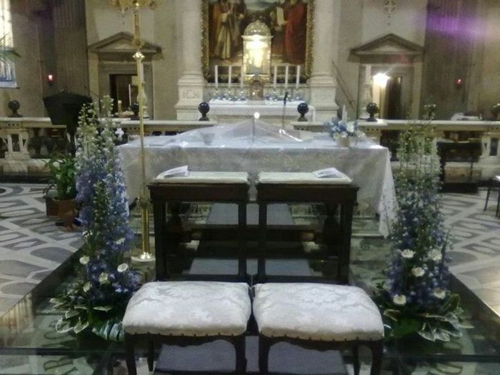 Il mio Don non mi ancora detto come sarà la nostra seduta e lo dovrei dire alla fioraia per decidere se ci mettiamo qualcosa per abbellirle, hanno la spalliera o no....e le vostre???