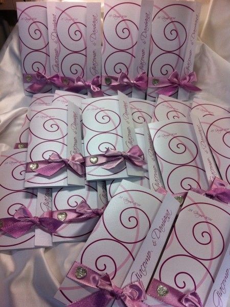 Ragazze buongiorno, ieri sera ho ricevuto le mie partecipazioni finite dall'artista (chiamarla tipografa sarebbe riduttivo!) e volevo mostrarvele...le buste, che qui non si vedono, sono in carta perlata con sopra le ns iniziali in fuxia. Ieri ho già...