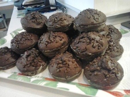 Come promesso...la ricetta dei muffin! (dosi x 12 muffin) Ingredienti: 200 gr di farina '00/60 gr di cacao amaro/190 gr di zucchero/mezza bustina di lievito x dolci/150 ml di latte/2 uova/60 gr burro/90 gr di cioccolata a pezzettini che ridurrete...