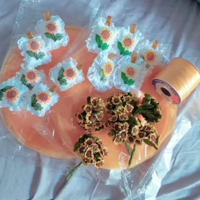 premetto che non a tutti piacerà! Però per noi c'è un grande e profondo significato in questa scelta ... ✨💪🏻❤Allora le confezioneremo noi a mano in delle apposite confezioni, i veletti con confetti è portachiavi con girasole 🌻 realizzati da me è...