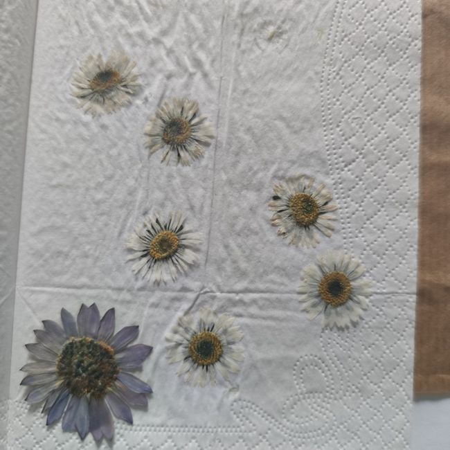 I petali delle rose e le foglie verranno fatti a forma di cuoricini piccoli piccoli con un attrezzo apposta ed ovviamente anche loro verranno fatte essiccare! mentre le margheritine lasciate intere!