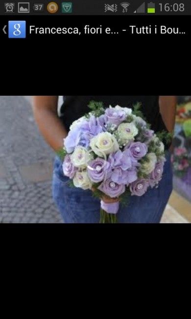 Il mio fiorista e un artista non ama le cose classiche e fatte in serie...vuole che il mio bouquet sia mio, disegnato per me, io ho sempre pensato ad un bouquet di vendela tondo con la coda tempestato di piccoli swaroski centrali ....lui mi ha però...