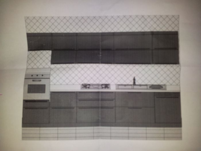 Salve ragazze questo è il progetto della mia cucina che purtroppo dovrà essere lineare di 4,10 cm cosa ne dite vi piace? io vorrei il forno alto ma ragionadoci un po forse se viene sotto l angolo cottura recupero un po di piano d'appoggio e sopra...