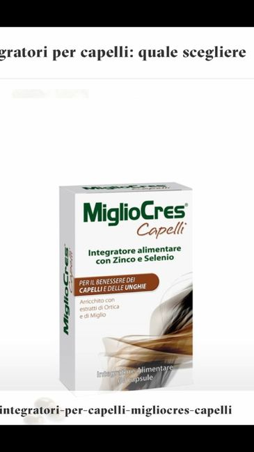 Ciao sposine come state???Volevo chiedervi,qualcuna di voi ha provato queste compresse MiglioCres per rinforzare capelli e unghie???Come vi siete trovate???Non ricordo in quale topic una sposina faceva riferimento a queste compresse!!!Un bacio a...