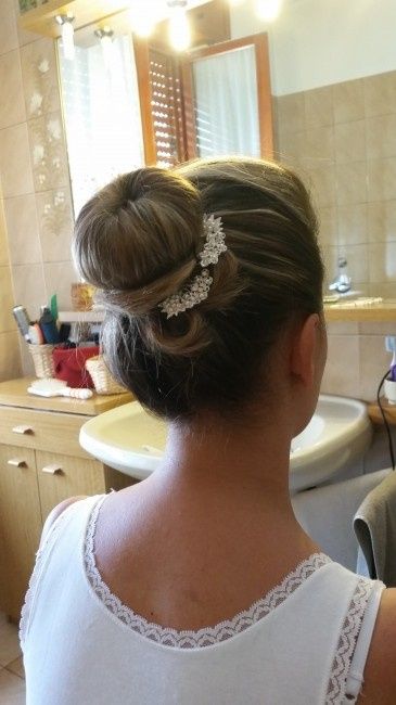 Dallo stile romantico dell'abito ho voluto scegliere uno chignon semplice.questa é una bozza!