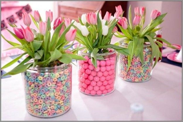 Ciao ragazze! Il mio matrimonio probabilmente avrà un sapore tipicamente shabby chic! Vorrei realizzare dei centro tavola simili a quelli della foto, ma con qualche piccola differenza: barattolo di vetro trasparente, contenente caramelle gommose...