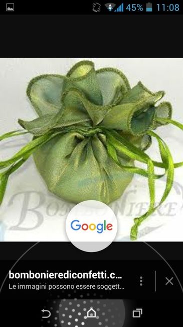 Vi piace come idea? Sacchetto simile in organza verde con dentro petali profumati dietro confetti e sul davanti gli sposini?
