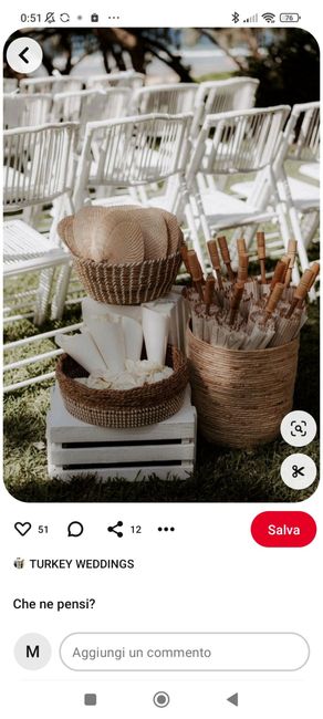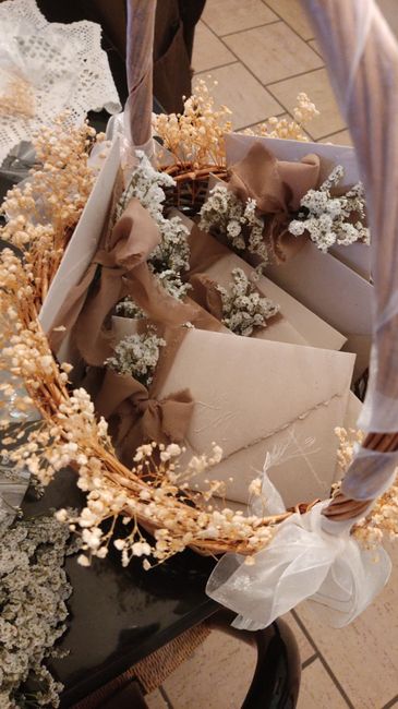 Ciao a tutte.. dopo una lunga riflessione ho deciso di non fare la wedding bag, bensì pensavo di allestire un piccolino tavolino, dietro alle prime sedie di dove avverrà la cerimonia ( ci sposiamo all’aperto se il tempo lo permetterà ), con il...