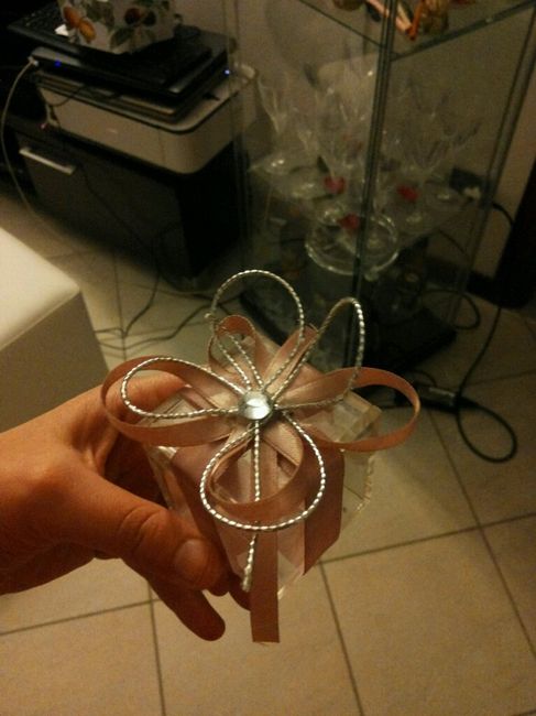 Ciao a tutte. . Ho iniziato un altro fai da te.. i confetti da dare ai colleghi.. non mi andava di fare il solito sacchettino e allora ho confezionato queste scatoline ..
