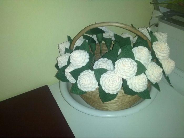 Ciao sposine! Vi piace come idea ? Al lavoro anziché portare confetti che poi c'è chi ne mangia 100 e chi 1 ho fatto fare queste rose di carta dove attaccherò le scatoline con i confetti .... Così uno ciascuno nn fa male a nessuno !!!l