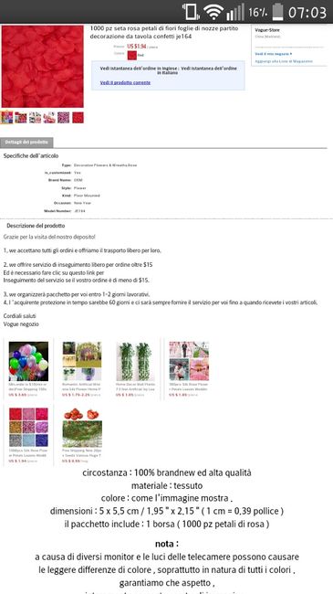 Oggi apro la buca e trovo un pacchetto...i miei occhi si sono illuminati perché sicuramente Sara qualcosa che o ordinato x il matrimonio...infatti apro ed erano i miei petali,x provare come fossero ne ho ordinati 1000 bianchi e 1000 Rossi...cmq che...