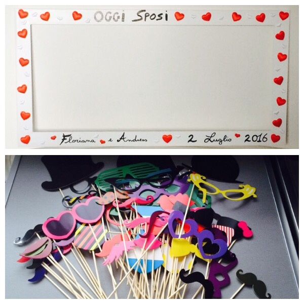 Finalmente il photo boot è pronto, ispirato al tema e colore delle nozze :-) cuori e rosso :$
