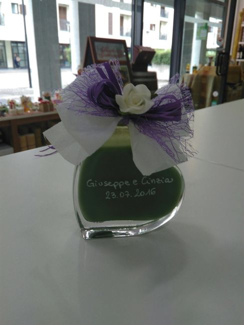 Ecco una foto che mi ha mandato la ragazza che le confeziona! Che emozione !! abbiamo scelto le bottigliette a forma di cuore e abbiamo scelto il liquore alla crema di pistacchio!! Tra poco andrò a ritirarle