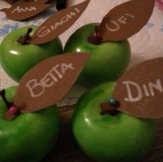 scusate per la risoluzione e le foto scattate malissimo ecco i miei fai da te segnaposto a forma di mela verde wedding bag secchielli di latta portaconfetti (per coloro che non verranno al ricevimento) Bomboniere confezionate mancano ancora i...