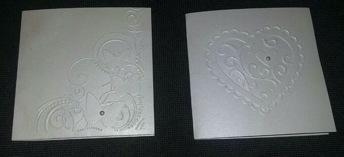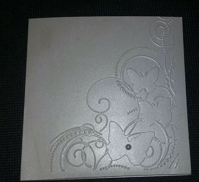 Spose..è l'ultimo tppic che apro per le mie partecipazioni..oggi è arrivato l embossing a cuore ed ho voluto provare. Precedentemente mi aveva to consigliato le farfalle rispetto ad un altro che adesso ho scartato..e anche ad fm piaceva di piu. Ora...