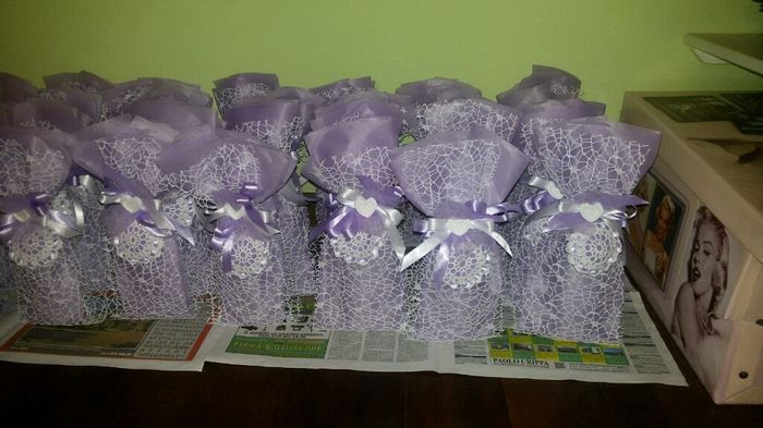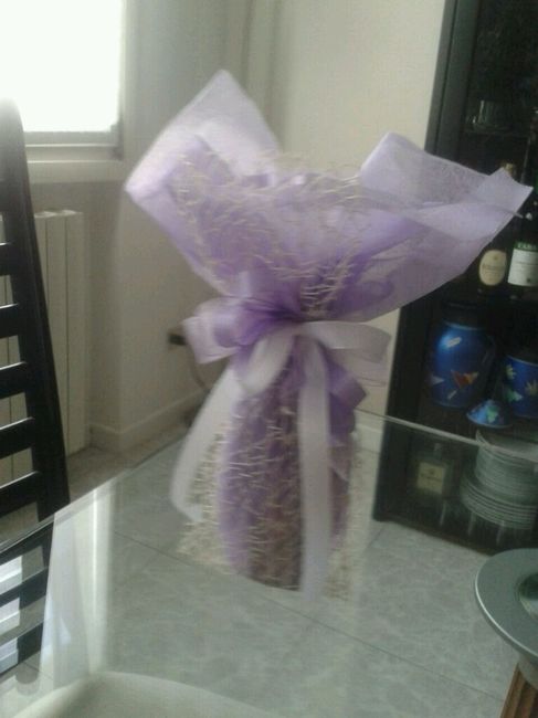 Come bomboniera ho fatto l olio... (fatto nella nostra zona), abbiamo provato a imballarlo in scatolette di plastica trasparenti con dentro del tulle e stava male. Il fiorista mi ha proposto questo.... ho trovato anche il tipo di "tessuto" da...