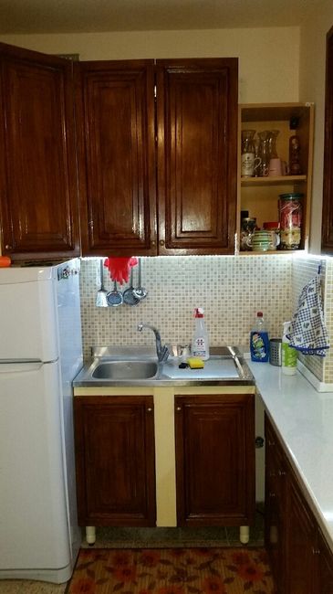 Stile rustico...mi è sempre piaciuta così. ..calda e accogliente! Abbiamo dovuto allungare un pezzo quindi in realtà la nostra è leggermente più grande! Felicissimaaaaaa: