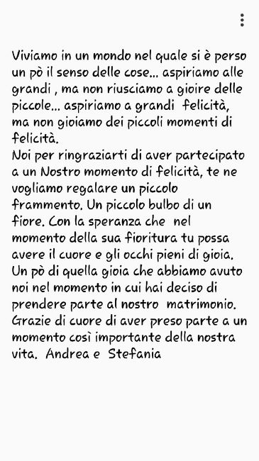 buongiorno sposine ^_^ mi consigliate delle frasi di ringraziamento per gli ospiti da allegare al sacchetto dei confetti? Sono attualmente in modalità off... ho il cervello completamente spento