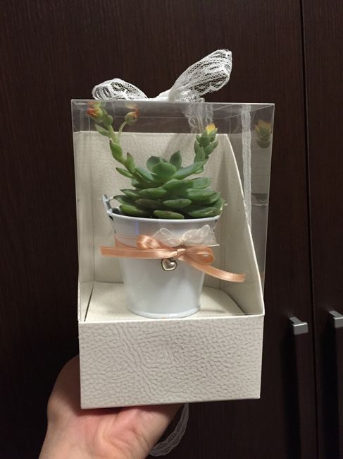 Buongiorno a tutte/i, noi abbiamo scelto come bomboniere delle piante grasse che comporremo in fai da te, abbiamo acquistato i vasi (quadrati trasparenti 10x10) e credo un mesetto prima del matrimonio acquisteremo piante e sassolini per comporle,...