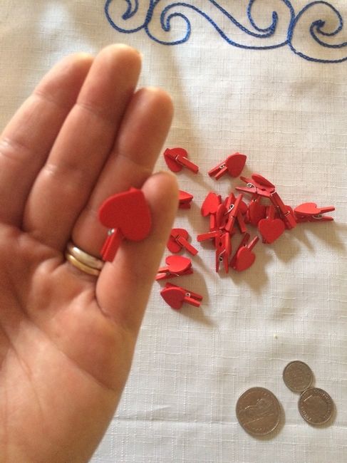 ciao sposine.. Ho comprato delle mollettine a cuore.. Ma adesso non so che farci... Idee? Consigli? Sono corca 15 per scatolina pagate tre euro