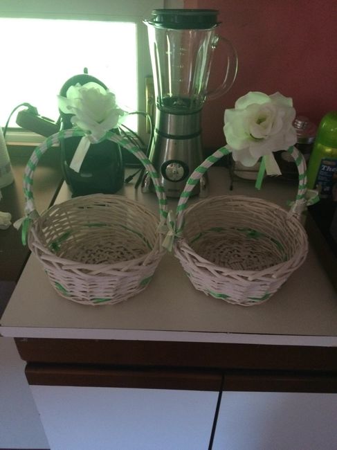 A nove mesi dal si, ieri non avevo nulla da fare e ho provato a fare questi cestini. Pochi soldi negozio cinese e trovi ciò che vuoi. Fiori finiti cestini bianchi colla e nastrini. Non è il mio verde mela ma era quello che passava il convento. Voi...