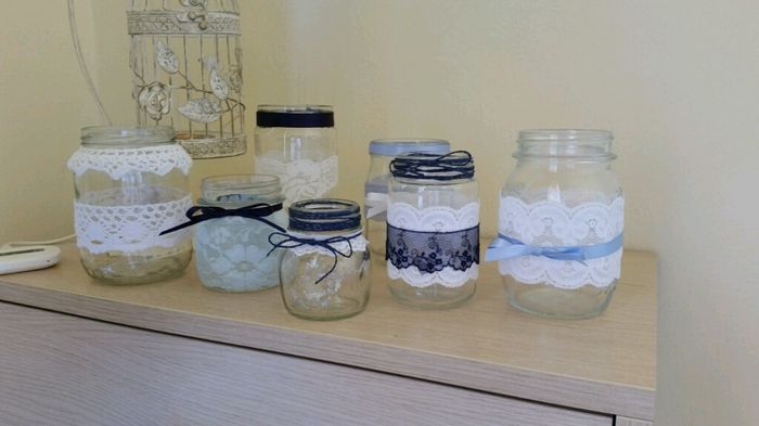 Per decorare e rendere più accogliente la mia casa nei giorni precedenti e successivi al matrimonio, io e mia mamma stiamo preparando dei barattoli che potrebbero diventare vasetti per fiori o paralumi per candele utilizzando vetro vecchio, spago,...