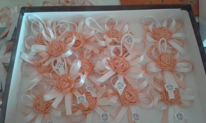 Ciao ragazze...vi mostro i sacchettini che porterò fuori alla chiesa e che darò ai non invitati e a tutti coloro che verranno fuori chiesa..insomma anche ai passanti, come augurio. Fatti a mano all uncinetto da mia mamma e confezionati con...